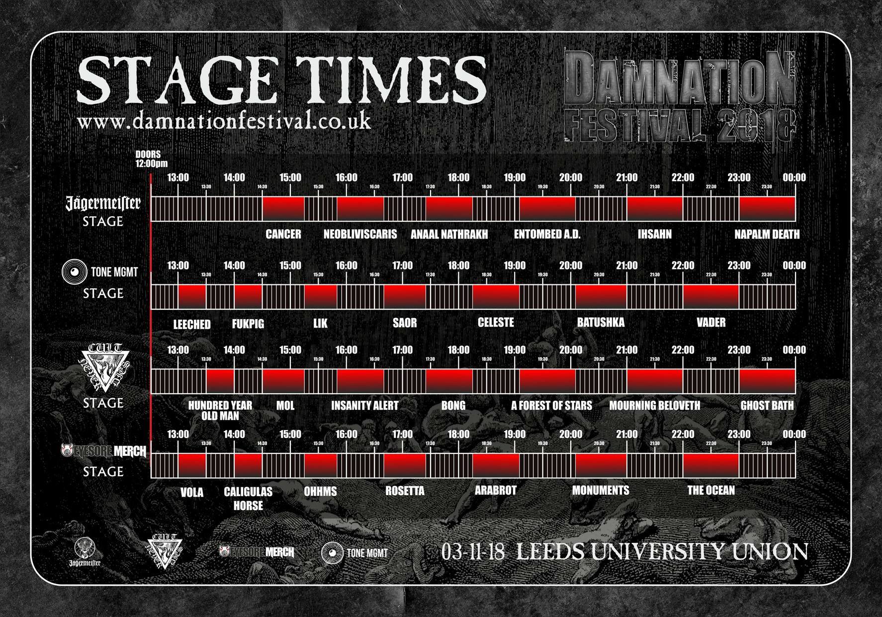 The UK’s Damnation Festival has once again rolled around, and it’s time for all good music fans to get themselves to Leeds and bask in the amazing lineup that the festival gods always seem to be able to pull together. As you can see from the above poster, this year boasted some great talent.
