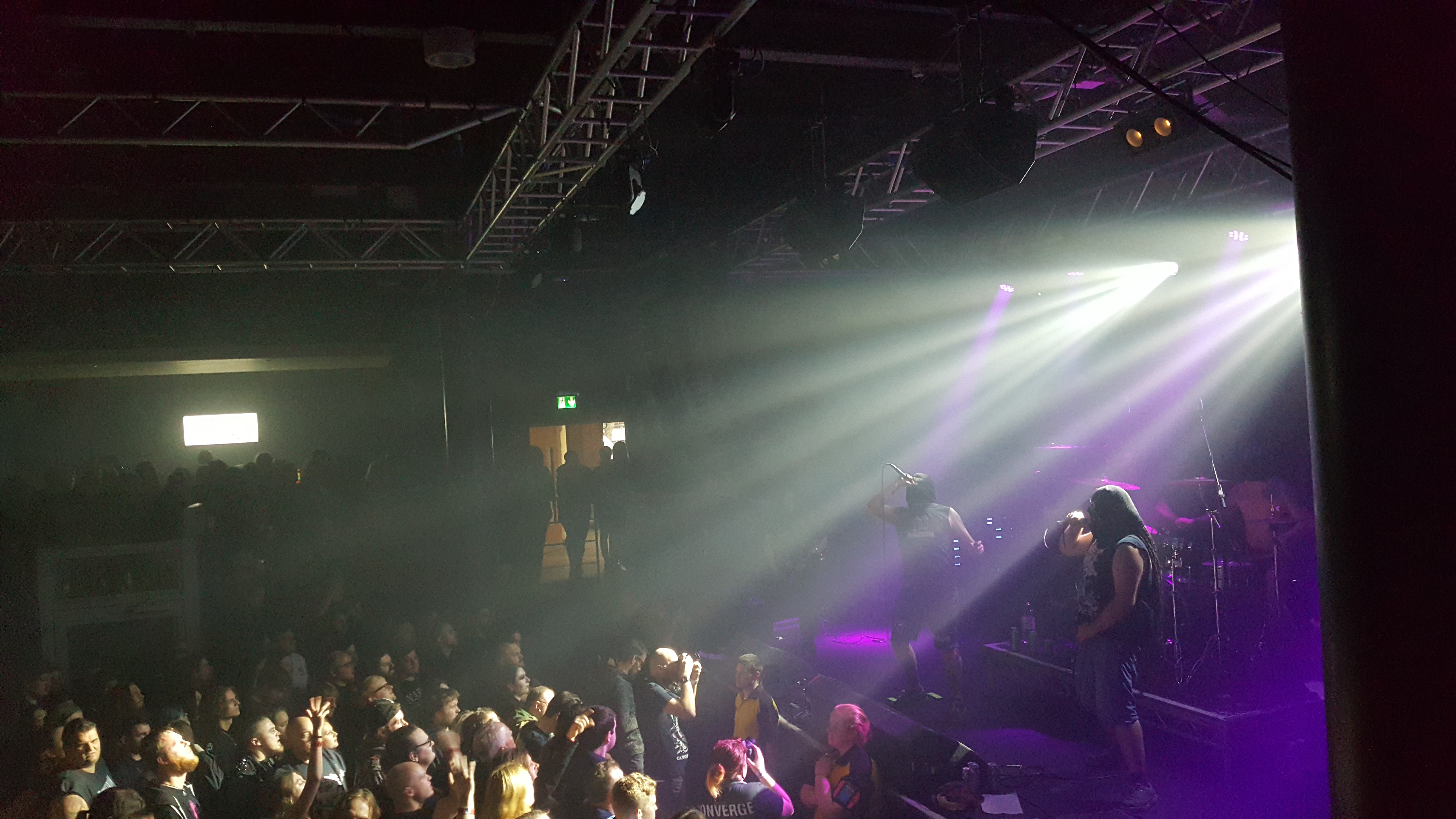 Well, in hindsight I should have left much, much earlier. Holy crap, I knew Batushka were going to be popular, but this is ridiculous. By the time I get down to the entrance to the lower stages there’s a loooong queue and it’s moving sloooow. After far too long I eventually get in, although ‘in’ just means a few bodies into the top of the room. I’ve never seen the stage this packed – it wasn’t even as bad as this for Nails last year, and that was pretty full. You’ll note the lack of pictures of this band, as I had no chance of getting any.