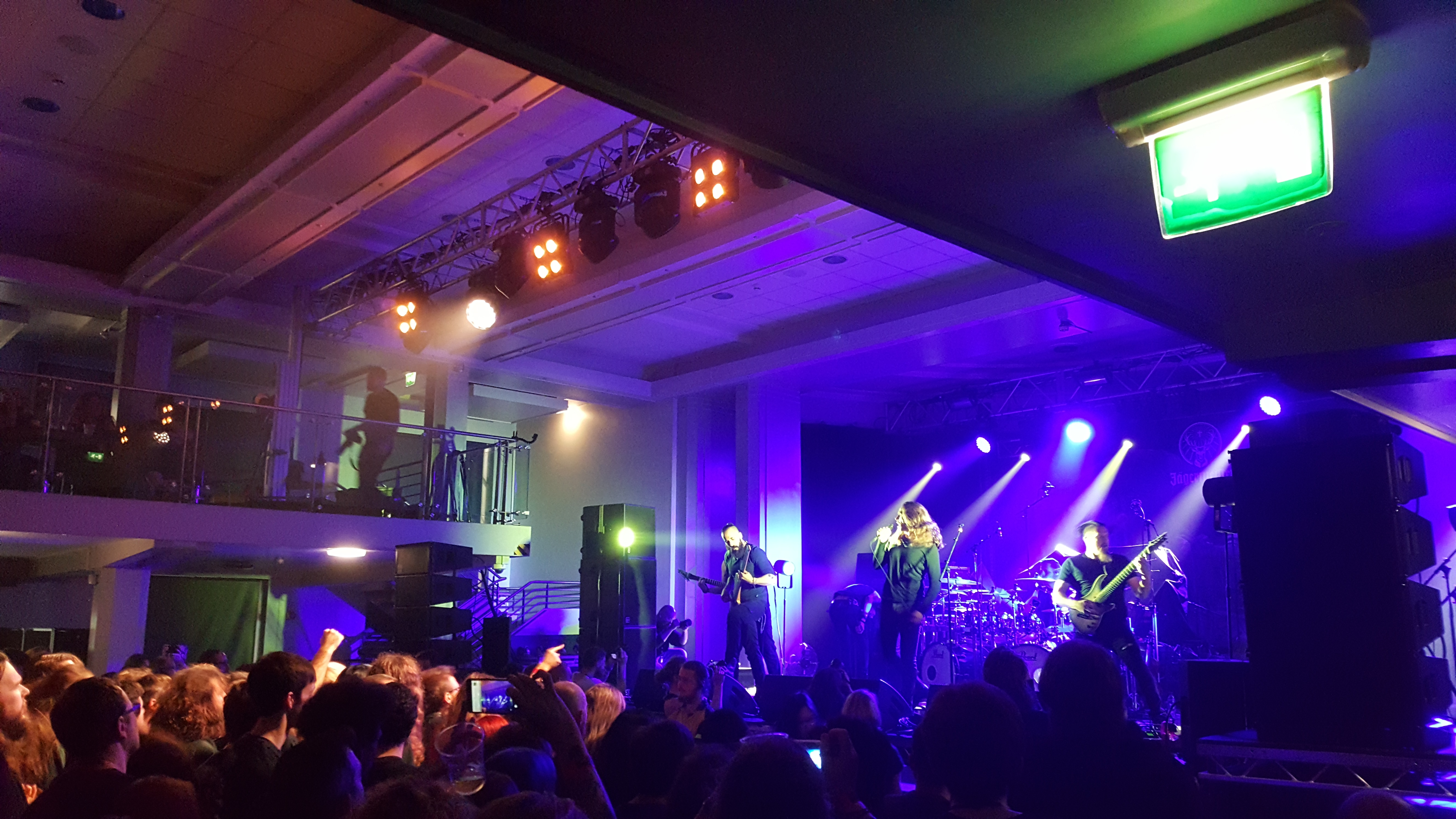 The band start their show with a largely clear, powerful sound. They make the most of this admirably, while it lasts anyway. The clean vocals in particular sound very…well, clean. In contrast, the other singer’s growls spend most of the time too low in the mix. The violin is exquisite, however, (at least until it’s dropped later on in their set, and it then takes a while to work its way back up the mix). There are some other sound gremlins too, but not enough to really hold the band back too much.