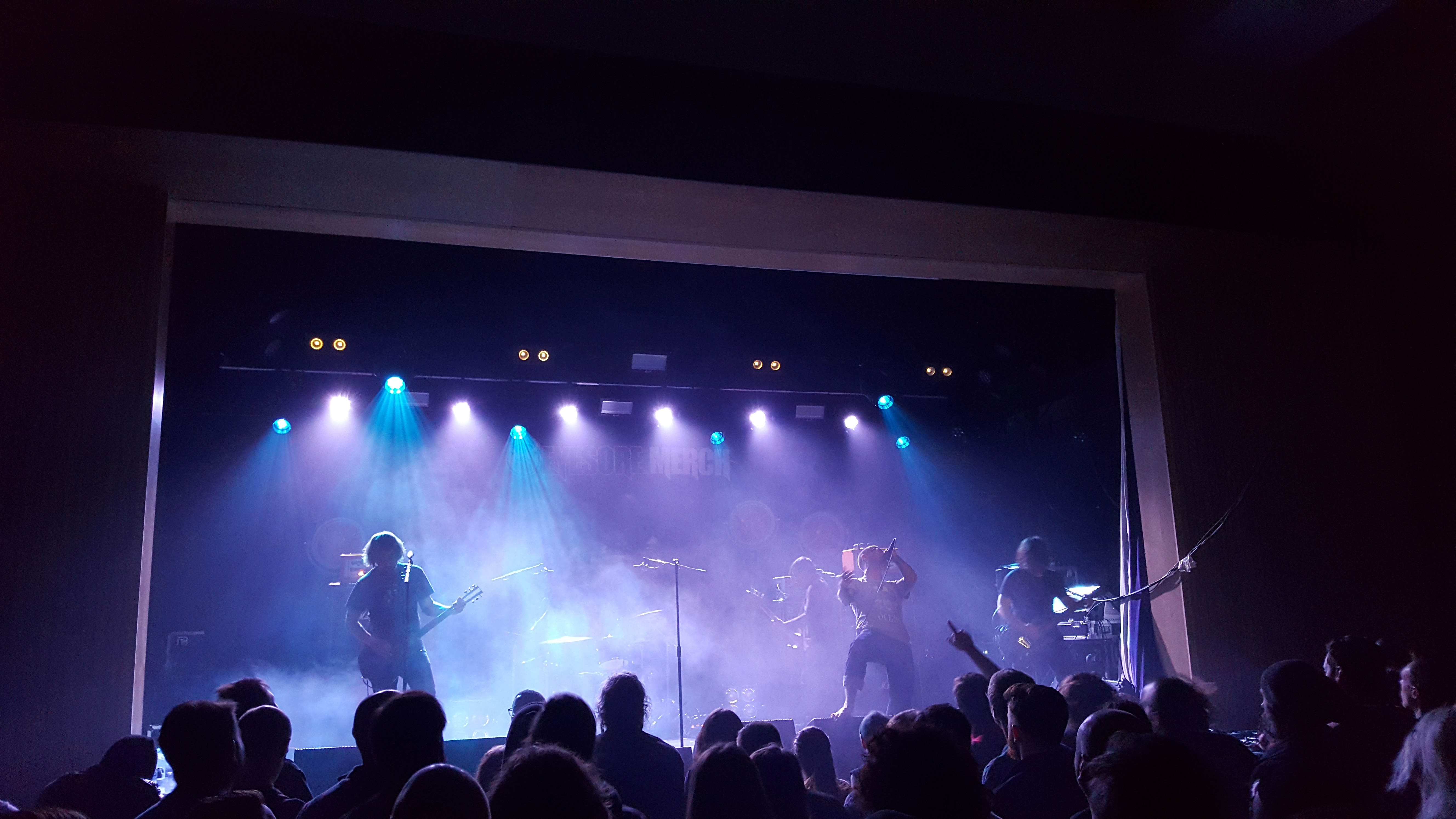 Between song drone keeps us company while the band collect themselves for the next epic to be unleashed, but unlike previous times when I’ve seen this band, the singer does say a few words to the audience now and again too. During the songs, his expressive and versatile voice impresses live, and his performance is definitely a focal point. He’s all over the stage, and sometimes off it. About halfway through the set he jumps into the audience and sings from atop the crowd for a while. It’s not the only time he does this either.