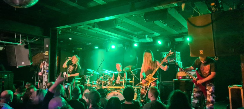 Unfortunately, traffic issues mean that I’m late to the venue and only catch the last ten minutes or so of Pestifer. It’s a shame, as I like their music and was looking forward to seeing them properly. The venue is really busy, and plenty have manage to turn up in time to see the band, which is great. What I do manage to see is good, and I like their engaging brand of technical/progressive death metal.